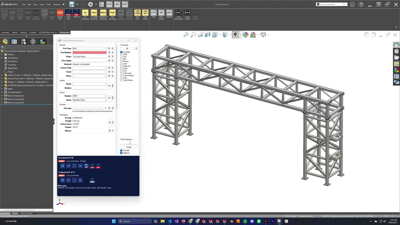 The core of Steelworks™ focuses on efficiently and accurately routing piece parts and assemblies through your shop. With Steelworks, you can create Work Orders for even the most sophisticated projects in a matter of minutes while significantly reducing the risk of human error. A comprehensive validation system ensures that discrepancies or potential errors are addressed before Work Orders or any other documents are created.
